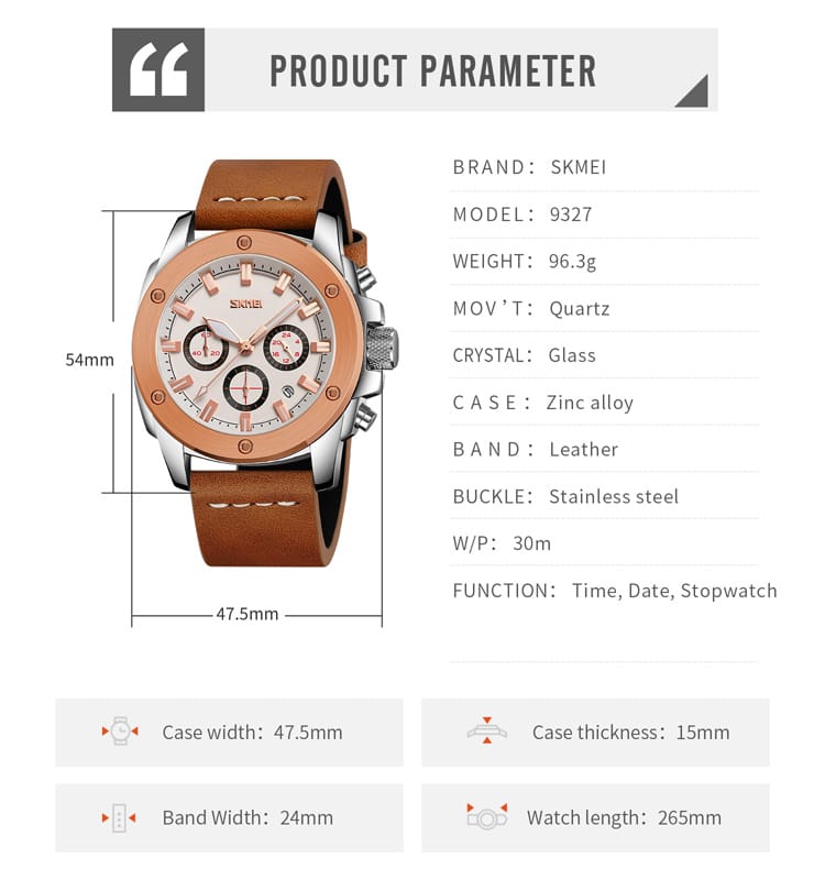 RELOJ SKMEI 9327 RESISTENTE AL AGUA CON CRONÓGRAFO