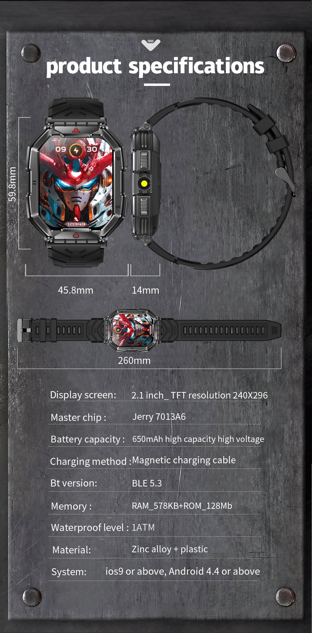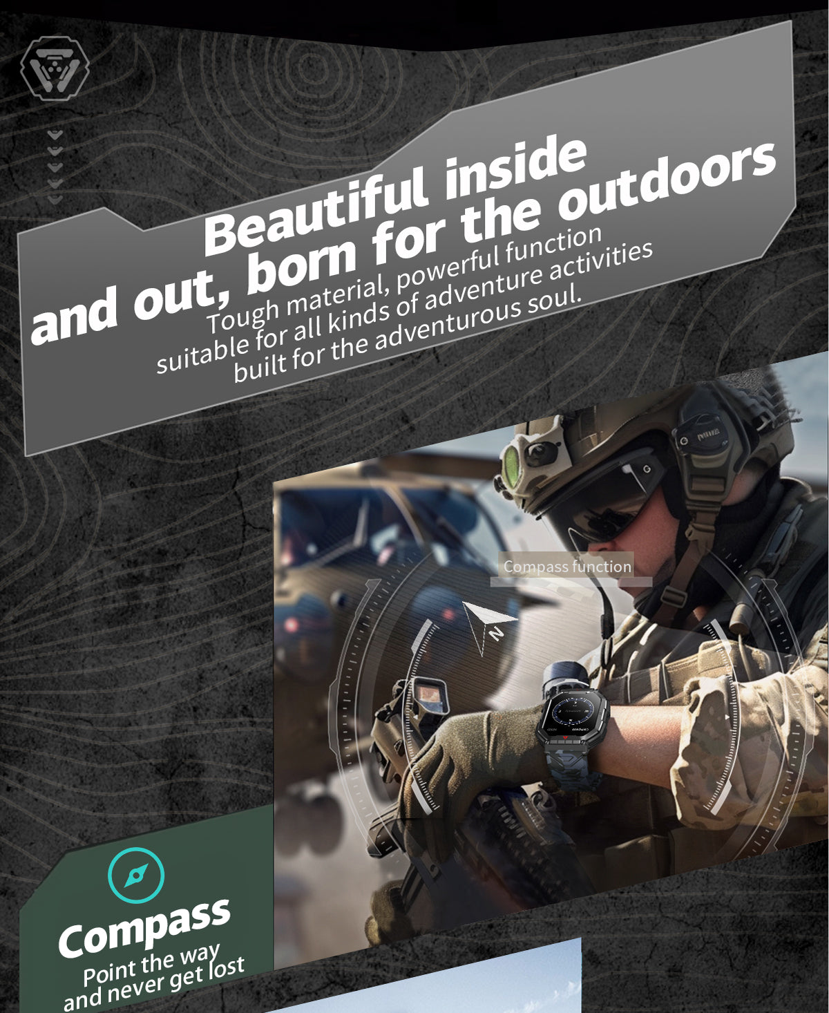 Soporta asistente de voz AI, función de llamada Bluetooth, 4 minijuegos integrados, función de calculadora, brújula de presión de altitud. Linterna.